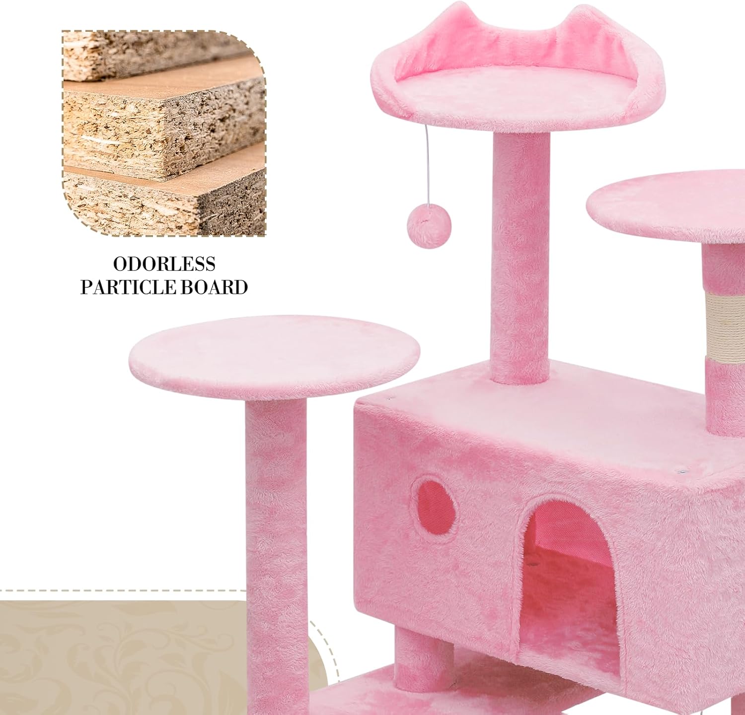 Give your cat the ultimate playground with this tall and large, with multi-level cat tree. Featuring cozy condos, plush platforms, sisal-covered scratching posts, and a fun hanging toy, it’s perfect for climbing, lounging, and play. Designed to fit neatly in any space while keeping your feline active, comfy, and entertained.Multi-Level Fun: Athena Collection 54 inches tall cat tree has several levels to keep your cats entertained. It includes comfy perches, roomy hideouts, and different platforms for your furry friends to climb, relax, or take a nap.Soft Plush Covering: Every platform and condo of this cat tree tower is wrapped in soft plush fabric, giving your cats a cozy, velvety spot to rest and unwind.Sturdy Construction: Made with durable materials, this cat tower with scratching post which was wrapped in natural sisal rope provide great spots for scratching and climbing, while keeping the structure stable and secure.Spacious Cat Condos: Features two private kitty apartments where your cats can curl up and relax in peace, this modern cat tree ideal for quiet catnaps away from the noise and activity.Interactive Accessories: This large cat tree tower comes with hanging toys that spark your cat’s natural urge to play and hunt, keeping them active and entertained for hours, great cat tree for indoor cat large adults.