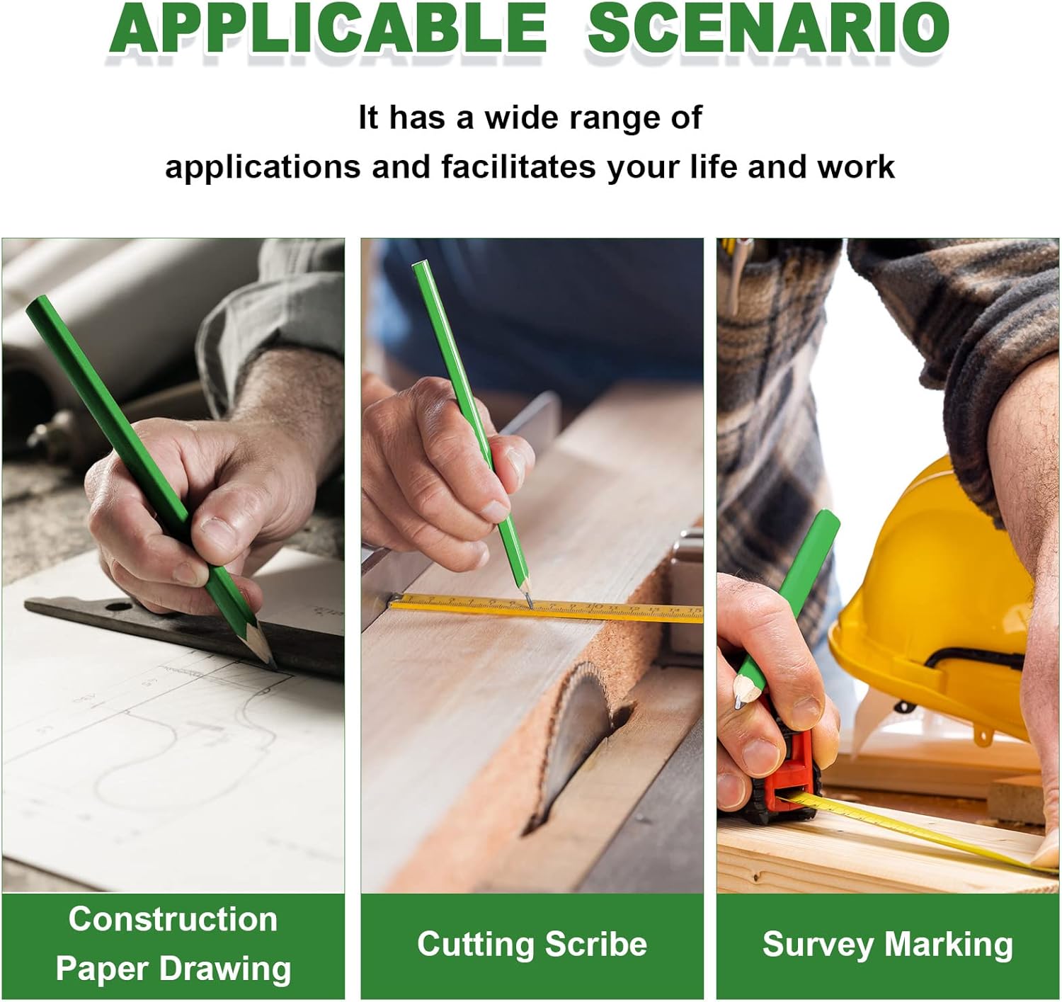 Features: Ideal gift: You can send the retractable carpenter pencil with sharpener to your friends or family who need to mark in their job, which will facilitate their work and bring a lot of convenience. Easy to mark: You can use the mechanical carpenter pencil to write down some sawing lines, molds or drilling points in woodworking marking, plastic material marking, paper product marking, concrete marking, etc. Specifications: Material: Carpenter pencil: wood Carpenter pencil sharpener: ABS plastic and steel Color: Carpenter pencil: as picture shown Carpenter pencil sharpener: black Size: Carpenter pencil: 175 x 13.7 mm/ 6.89 x 0.54 inches Carpenter pencil sharpener: 5.5 x 2.8 cm/ 2.17 x 1.1 inches Pen core: 5 x 2.5 mm/ 0.22 x 0.11 inches Package includes: 200 x Carpenter pencils 2 x Carpenter pencil sharpeners Notes: Manual measurement, please allow slight errors on size. The color may exist slight difference due to different screen displays.