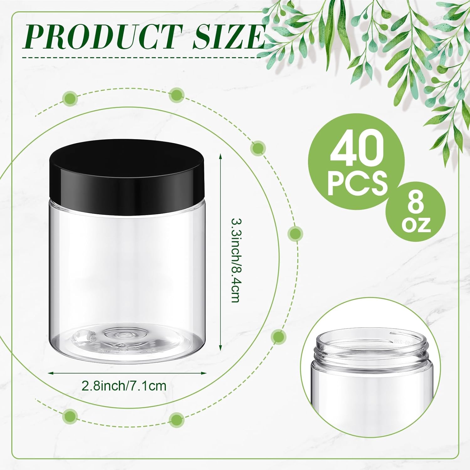 Features: Compact design: The design ensures these small containers with lids are comfortable to hold, with a smooth surface and a wide opening for easy filling and refilling. They're suitable for any storage requirements. Clear Visibility: The clear plastic applied in these jars allows you to see what's inside easily. They offer an at-a-glance view of the stored items Specifications: Material: plastic Color: clear, black Size: 2.79 inches diameter, 3.3 inches height Package includes: 40 x Clear plastic jar Notes: Manual measurement, please allow slight errors on size. The color may exist a slight difference due to different screen displays.