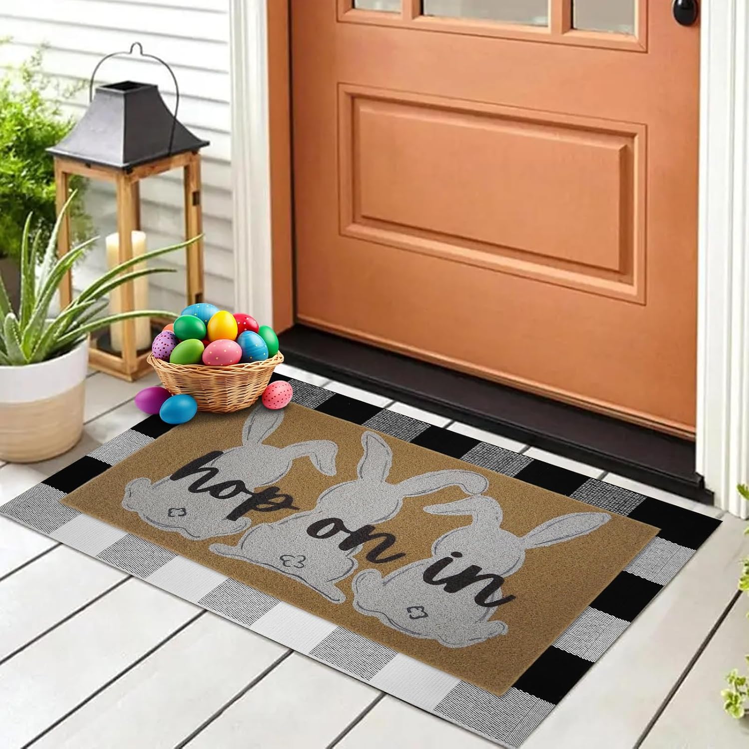 Product Name: Artificial Coconut Coir DoormatMaterial: Artificial Coconut CoirColor: As shownSize: Black and white checkered 23.6*35.4 in/60*90 cmcoconut coir mat 16.9*29.9 in/43*76 cmQuantity: 2 pcs