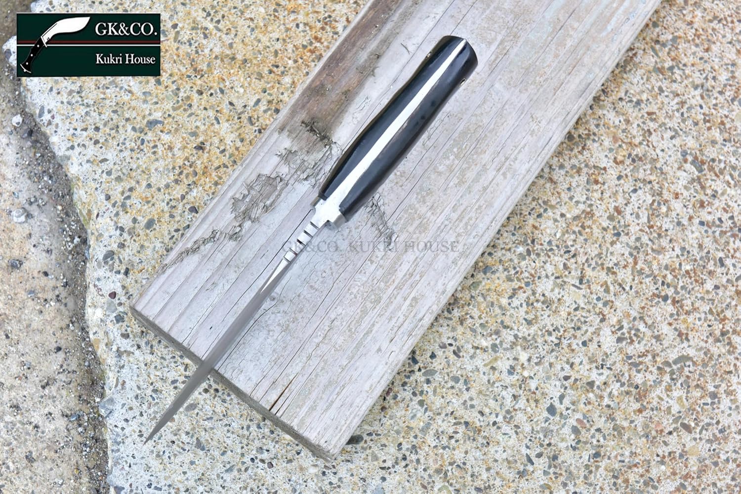 Designed to be a camp knife, brush-clearing tool, and self-defense weapon, the 6 Inch Special Gk&co kinfe wooden Handle Kukri from GK&CO.KUKRI HOUSE is ready for any outdoor wilderness or survival task to come your way! Kukri is handmade by traditional kami smiths in Nepal, this unique weapon is ready to head into the "bush" or deep woods and will prove to be an essential part of any outdoor adventure. The 5-inch Horn handle on the Kukri provides a roomy grip, woods fixed with L and key for durability and adjustment. Kukri is forged in a grueling beating process the Kukri is balanced and water cured. This durable 6-inch steel tempered blade will be a great accompaniment to any outdoor excursion. Origin: GK&CO.Kukri factory in Eastern Nepal.
