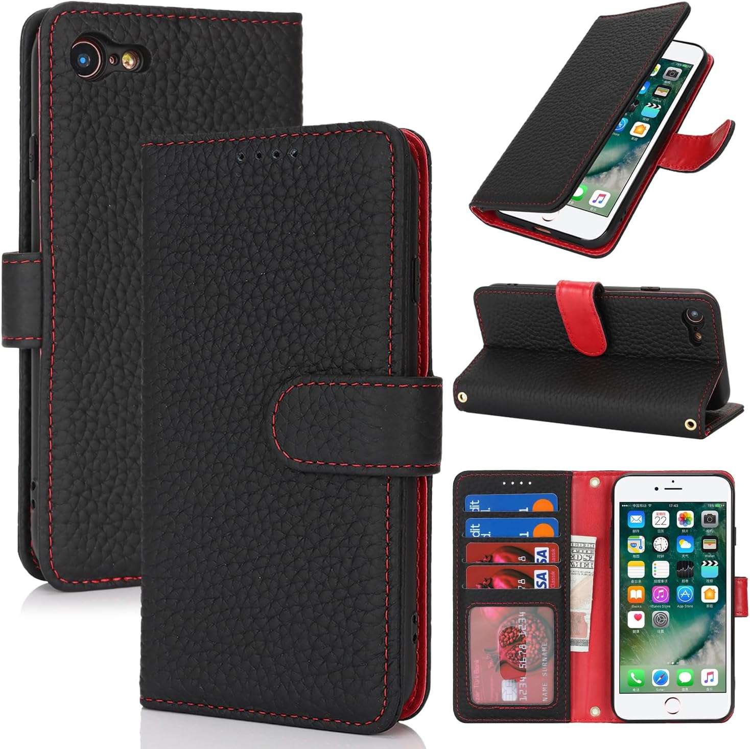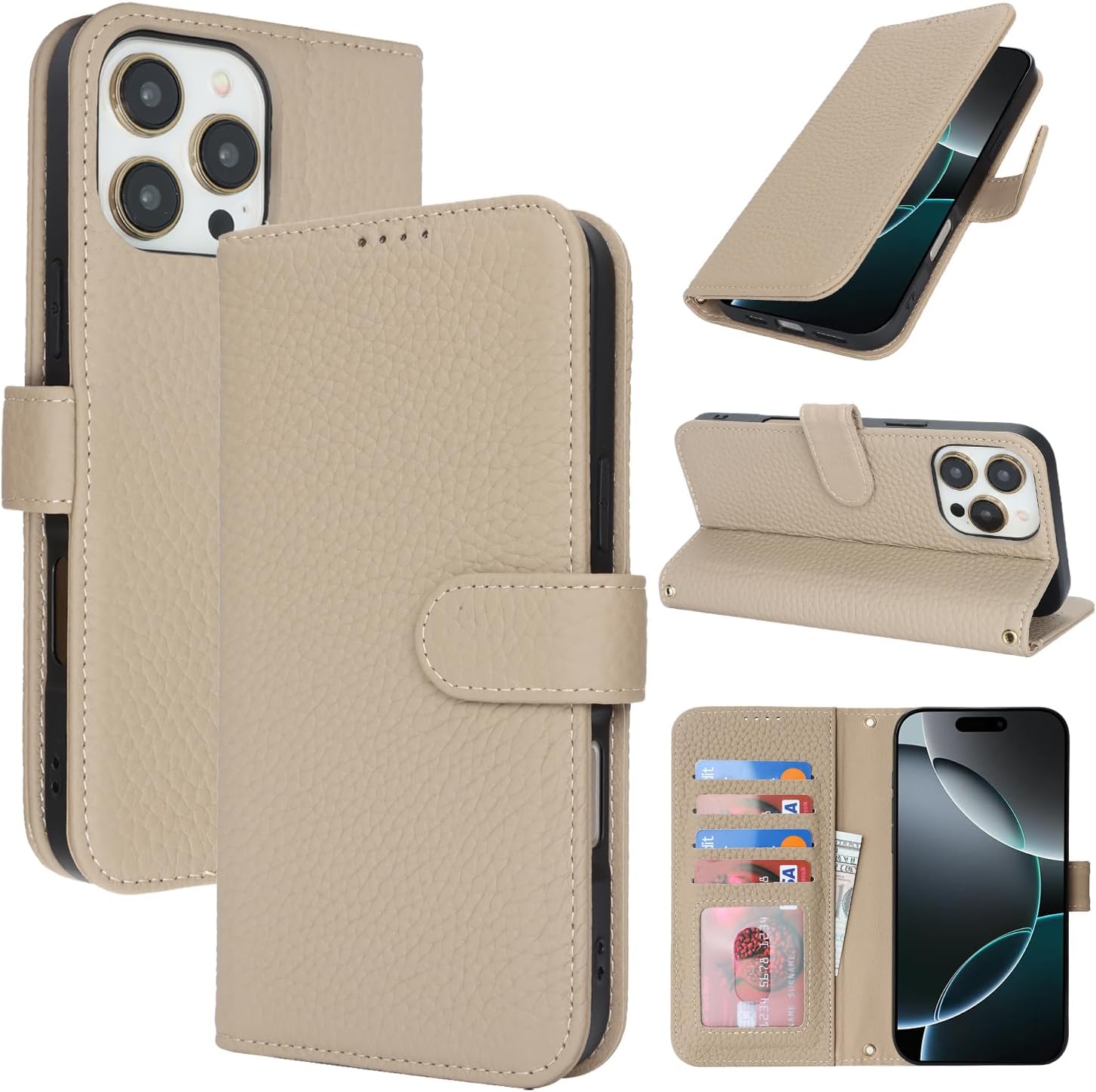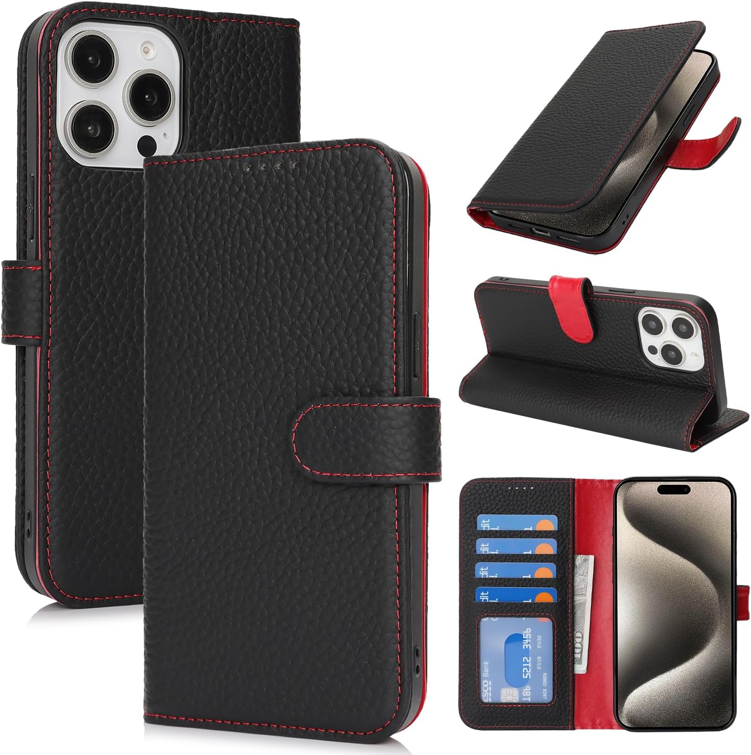 ZOUZT Case for iPhone 16 Pro Max 6.9" Genuine Leather Wallet Case with 4 Card Slot, RFID Blocking Card Holder Magnetic Flip Folio Shockproof Phone Cover Women Men for iPhone 16 Pro Max- Black & Red